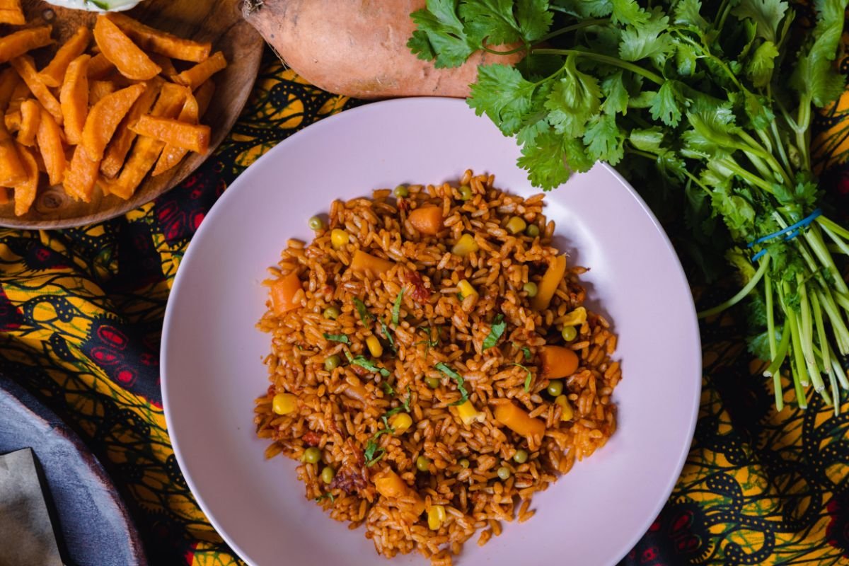 - Plat : Riz aux légumes (variante végétarienne du jollof rice)